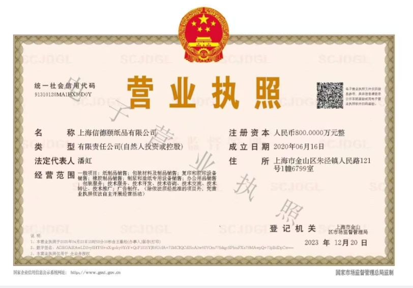 上海信德颐纸品有限公司是一家集设计制作、印刷、装订于一体综合性型独资企业。